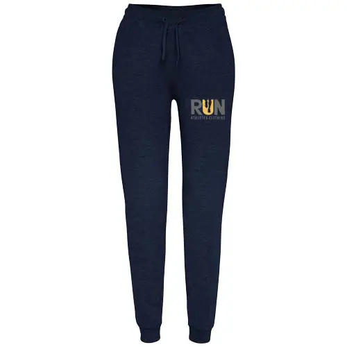 Sportowe spodnie z szerokim regulowanym pasem, sznurkiem do ściągania, dopasowanymi ściągaczami na nogawkach, wzmocnionymi szwami, prążkowanymi kieszeniami bocznymi i narożną tylną kieszenią z przeszyciem. Usuwalna etykieta.
