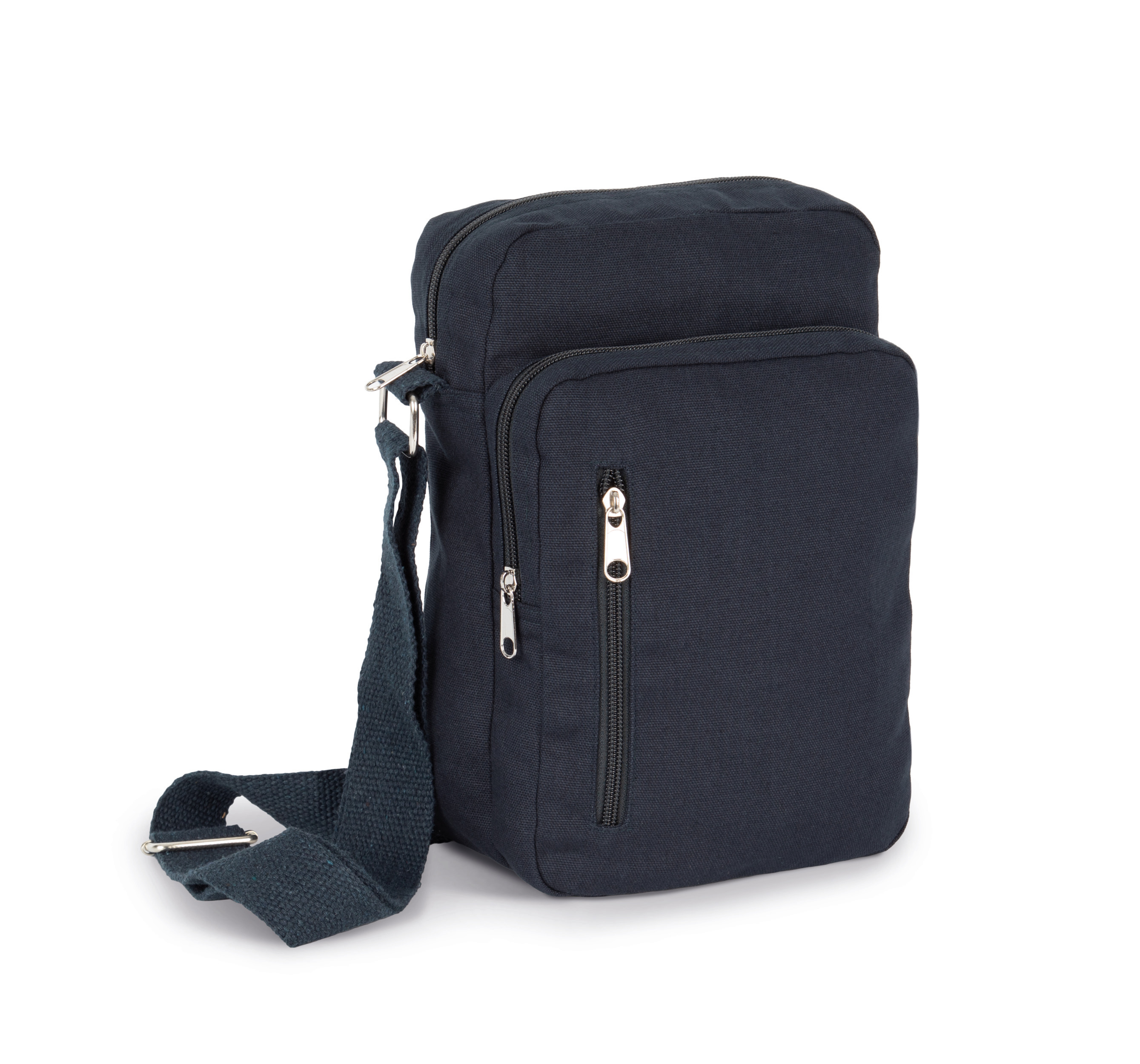 100% bawełna. Bawełniany pasek na ramię. Komora główna zapinana na zamek błyskawiczny. Duża przednia kieszeń z kolejną pionową kieszenią zapinaną na zamek dla łatwej personalizacji. Regulowany pasek na ramię.