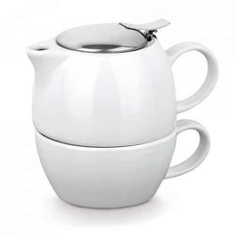 Ceramiczny zestaw 2 w 1 - imbryk z zaparzaczem ze stali nierdzewnej (430 ml) oraz filiżanka (260 ml).ø113 x 140 mm