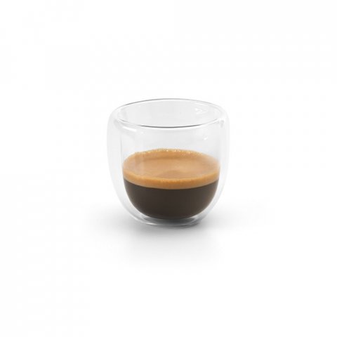 Szklany zestaw do kawy, z 2 filiżankami o podwójnych ściankach, pojemność do 75 ml. Dostarczany w pudełku prezentowym z możliwością personalizacji.Pudełko: 133 x 65 x 65 mm