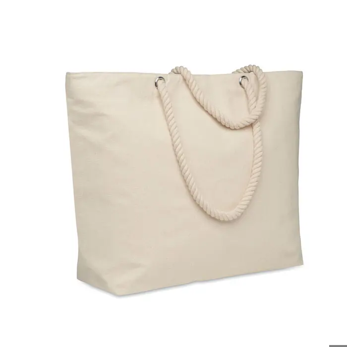 Zapinana na zamek chłodząca bawełniana torba plażowa z uchwytem sznurkowym. 220 gr/m². Izolacja z folii aluminiowej 2 mm.