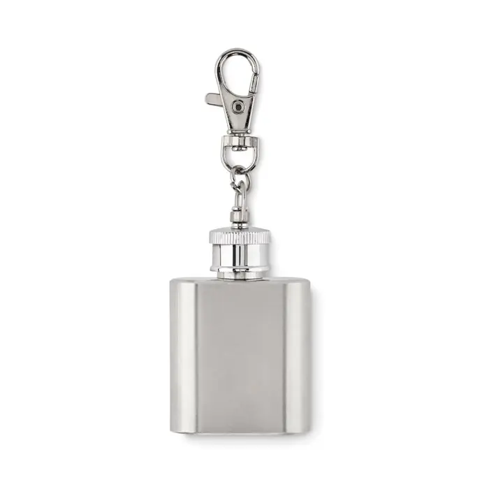 Brelok do kluczy w kształcie butelki ze stali nierdzewnej. Pojemność butelki: 28 ml.