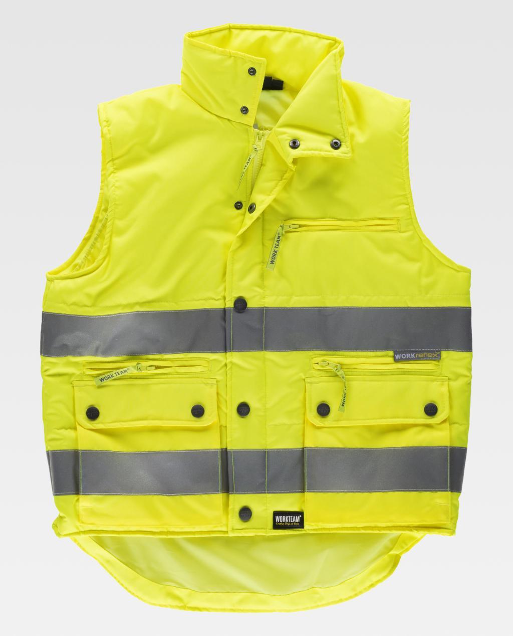 Ocieplana kamizelka odblaskowa z tkaniny Oxford z odblaskowymi taśmami. Stójka i zapięcie na nylonowy zamek błyskawiczny ukryte pod patką na haftki. Torba na klatkę piersiową i dwie wewnętrzne strony zapinane na zamek błyskawiczny. Dwie torby z mieszkiem i teczka z uchwytami po bokach. Naszywana torba na klatkę piersiowa z zapięciem na rzep w środku. Dwa odblaskowe paski na piersi i plecach. Regulowane otwory na ramiona. Gumka po bokach w pasie. Ocieplana kamizelka odblaskowa z tkaniny Oxford z odblaskowymi taśmami. Stójka i zapięcie na nylonowy zamek błyskawiczny ukryte pod patką na haftki. Torba na klatkę piersiową i dwie wewnętrzne strony zapinane na zamek błyskawiczny. Dwie torby z mieszkiem i teczka z uchwytami po bokach. Naszywana torba na klatkę piersiowa z zapięciem na rzep w środku. Dwa odblaskowe paski na piersi i plecach. Regulowane otwory na ramiona. Elastyczne po bokach pasa. Zaufaj Bananawork, liderowi spersonalizowanej odzieży roboczej i mundurów roboczych od 15 lat i zaskocz swoich klientów i pracowników dowolnym upominkiem promocyjnym zawartym w naszej szerokiej gamie produktów.