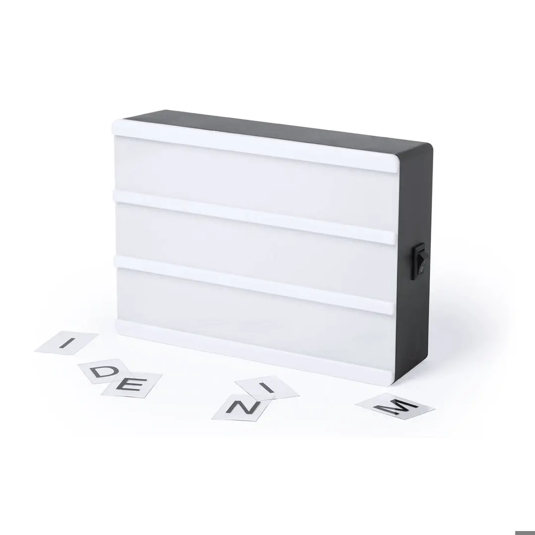 Podświetlana kasetka -lightbox- z podświetleniem korpusu 4 diodami LED. Zawiera 82 sztuki, z przyciskiem ON/OFF. Zasilany bateryjnie -4xAAA brak w zestawie-. Całość w atrakcyjnym pudełku. Lekkie pudełko Cinemax. (4 diody LED. 82 sztuki. 4 baterie AAA nie wchodzą w skład zestawu) Podświetlana kasetka - lightbox - z podświetleniem korpusu 4 diodami LED. Zawiera 82 sztuki, z przyciskiem ON/OFF. Zasilany bateryjnie -4xAAA brak w zestawie-. Zapakowane w atrakcyjne designerskie pudełko Zaufaj firmie Muybuenaidea, liderowi merchandisingu od 15 lat, i zaskocz swoich klientów i pracowników dowolnym upominkiem promocyjnym z naszej szerokiej gamy produktów.