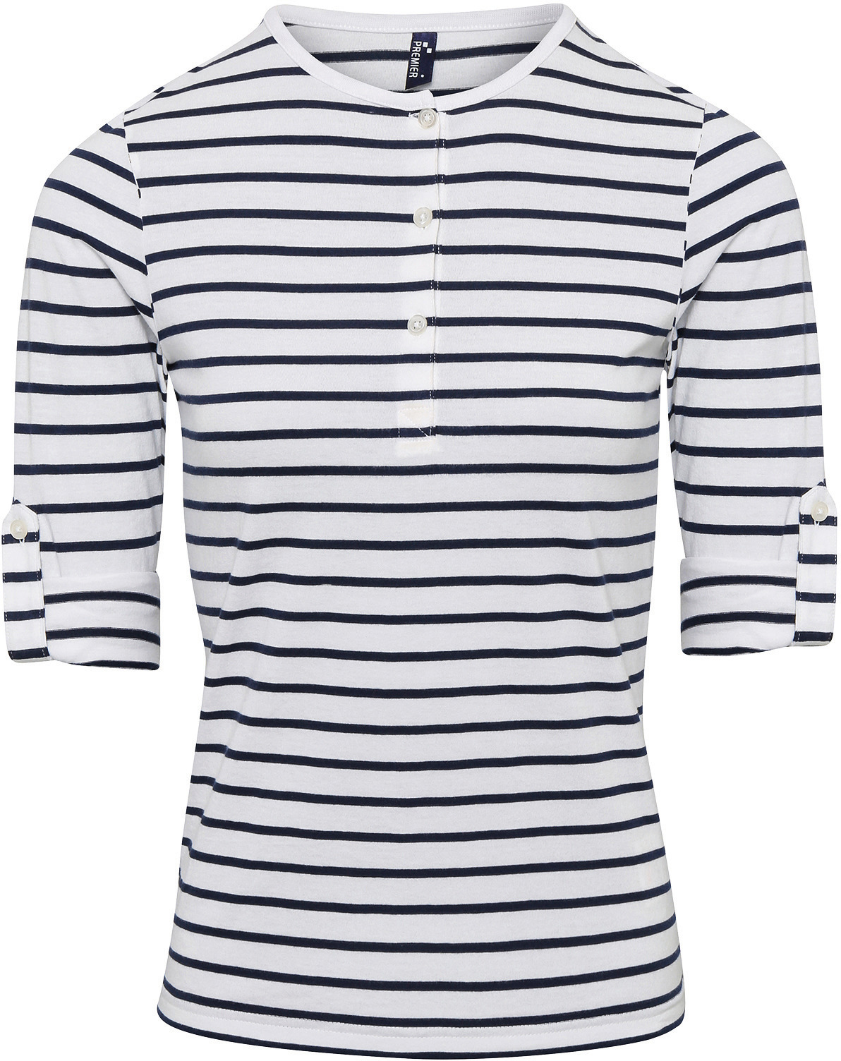 82% poliester / 14% wiskoza / 4% elastan (biały/granatowy: barwiona tkanina w paski). Miękki i elastyczny materiał sprawia, że jest wygodniejszą alternatywą dla klasycznej koszuli. Funkcjonalny t-shirt na co dzień: można go nosić w wersji z długim rękawem lub podwinąć dzięki blaszce na rękawach. Okrągły dekolt z zapięciem na trzy guziki. Prążkowany kołnierzyk i mankiety. Miękki i elastyczny materiał, przyjemny w noszeniu. Łatwa w pielęgnacji
