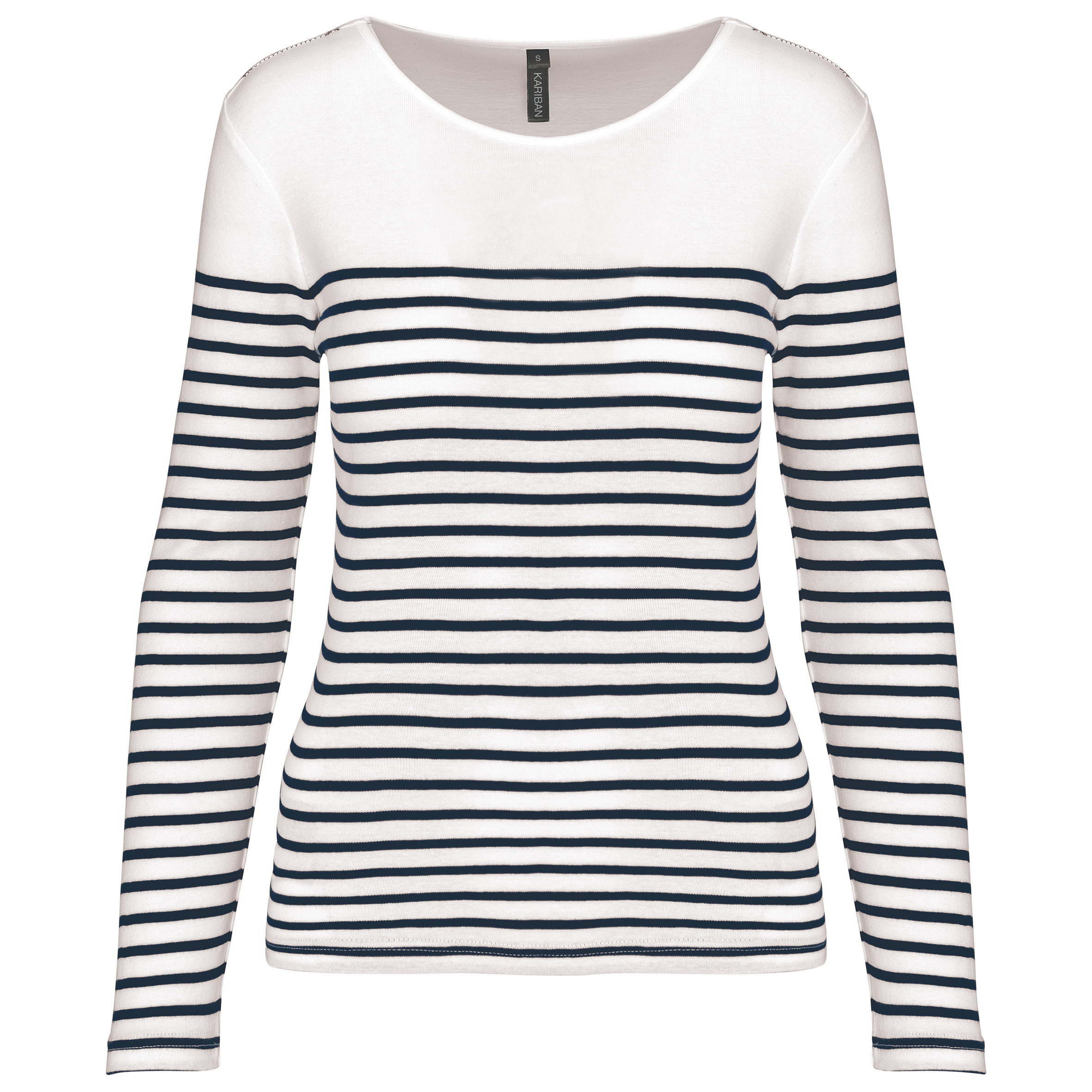 100% prążkowana bawełna. Okrągły dekolt. Kontrastowe ściegi na ramionach. Boczne otwory. Certyfikat STANDARD 100 wg OEKO-TEX® nr CQ1007/7, IFTH. Klasyczny i ponadczasowy marynarz. Nowoczesny krój, który nawiązuje do szykownego i swobodnego stylu. Kolekcja żeglarska. 100% bawełniana konstrukcja.