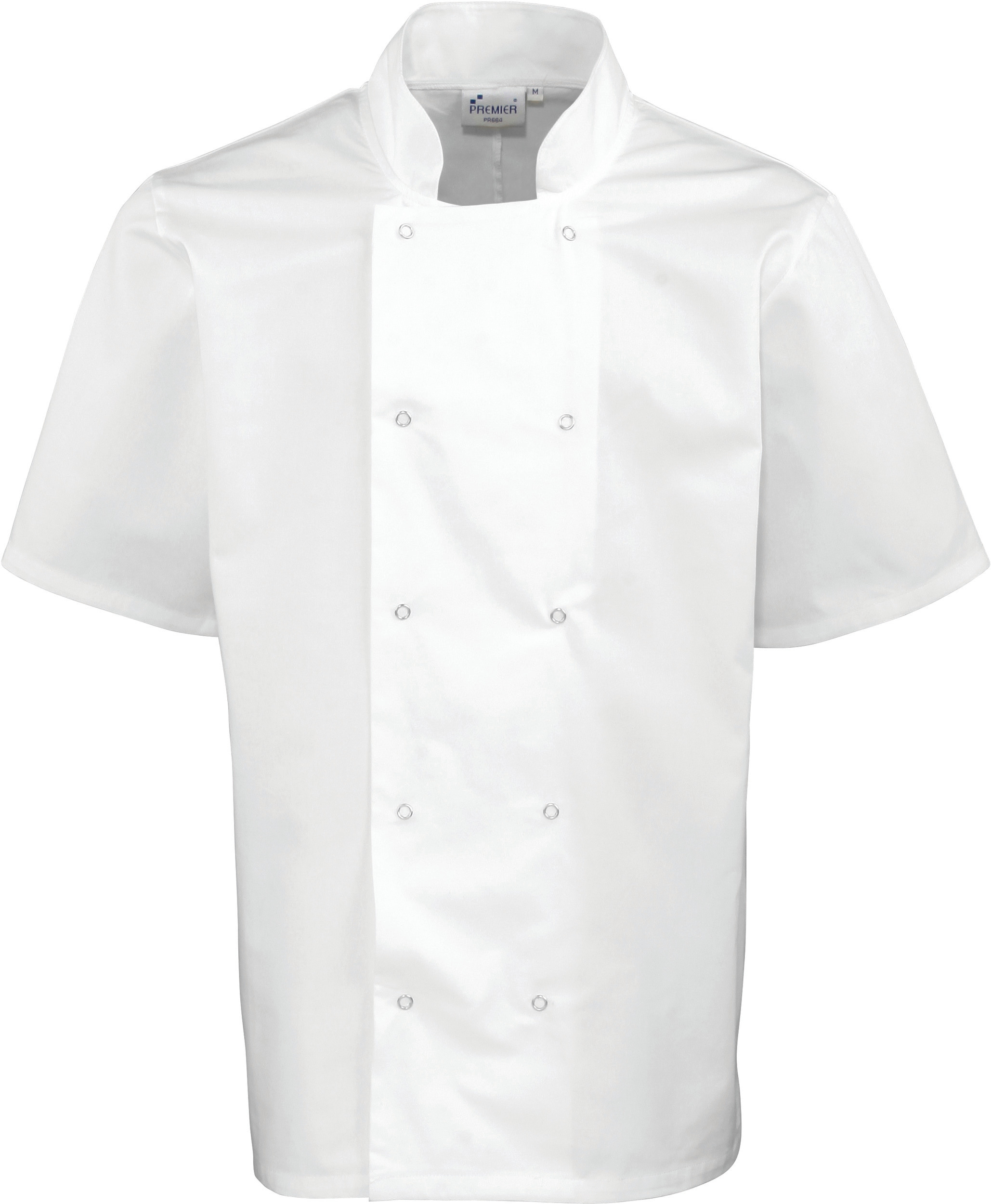 Kurtka szefa kuchni zapinana na zatrzaski, krótkie rękawy