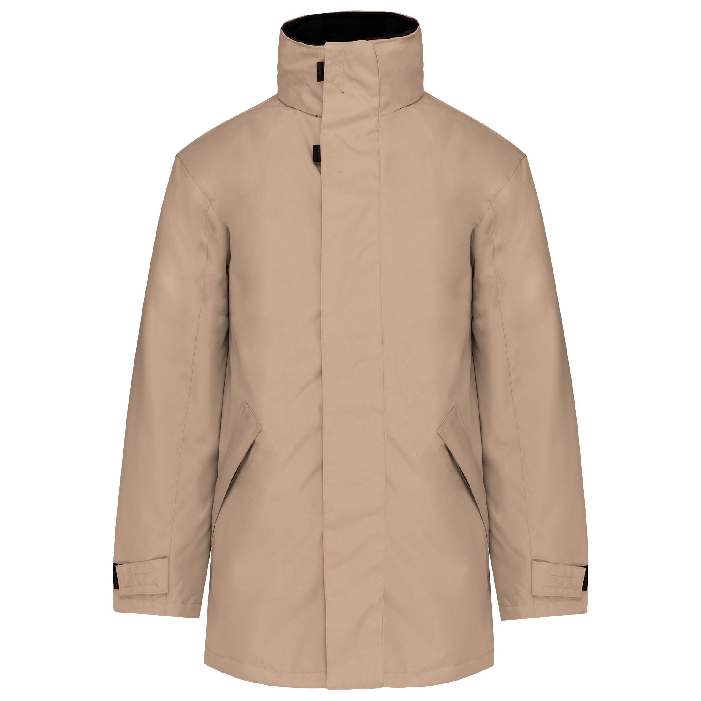 Materiał zewnętrzny: poliester Oxford; Wnętrze: podszewka i wypełnienie z poliestru. Zapinana na zamek błyskawiczny i klapa z regulowanym paskiem i ukrytym zapięciem na haftki. 2 zewnętrzne kieszenie na suwak. 2 kieszenie wewnętrzne (1 kieszeń na telefon komórkowy). Zintegrowany kaptur na szyi. Wewnętrzna wyściółka pod szyją z polaru. Wewnętrzny zamek błyskawiczny dla łatwej personalizacji. Średnia waga w rozmiarze L: 1230 g. Dopasowująca się i odporna tkanina. Pikowana podszewka zapewniająca optymalne ciepło i komfort. Gruby, funkcjonalny i wygodny.
