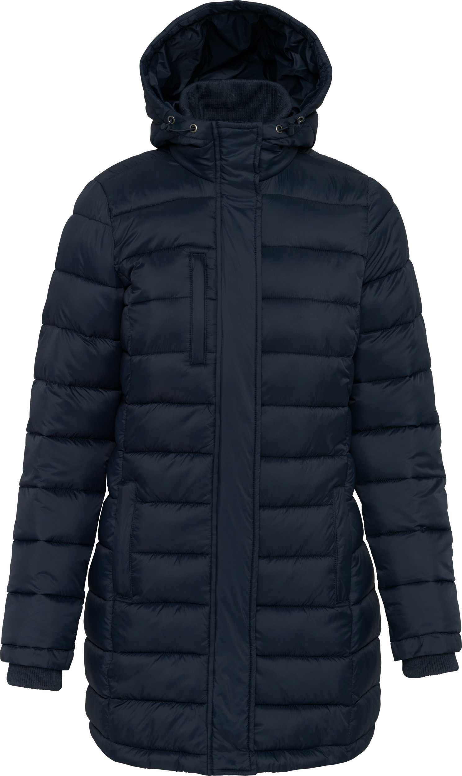 100% poliamid. Wewnętrzna podszewka z poliestru. Ciepły i ultralekki. Dopasowany krój. 2 kieszenie z przodu i 1 kieszeń na piersi z zamkiem błyskawicznym i ściągaczem. Ukryte zapięcie na zamek dzięki płytce z zatrzaskami. Kontrastujący kaptur i podszewka tułowia (oprócz koloru Granatowego). Wewnętrzny kołnierz i mankiety ze ściągaczem. Długa dopasowana parka, która przywołuje na myśl swobodny, sportowy kobiecy styl. Prążkowane mankiety zapobiegające przedostawaniu się zimna przez rękawy. Ciepły, wygodny i ultralekki design.