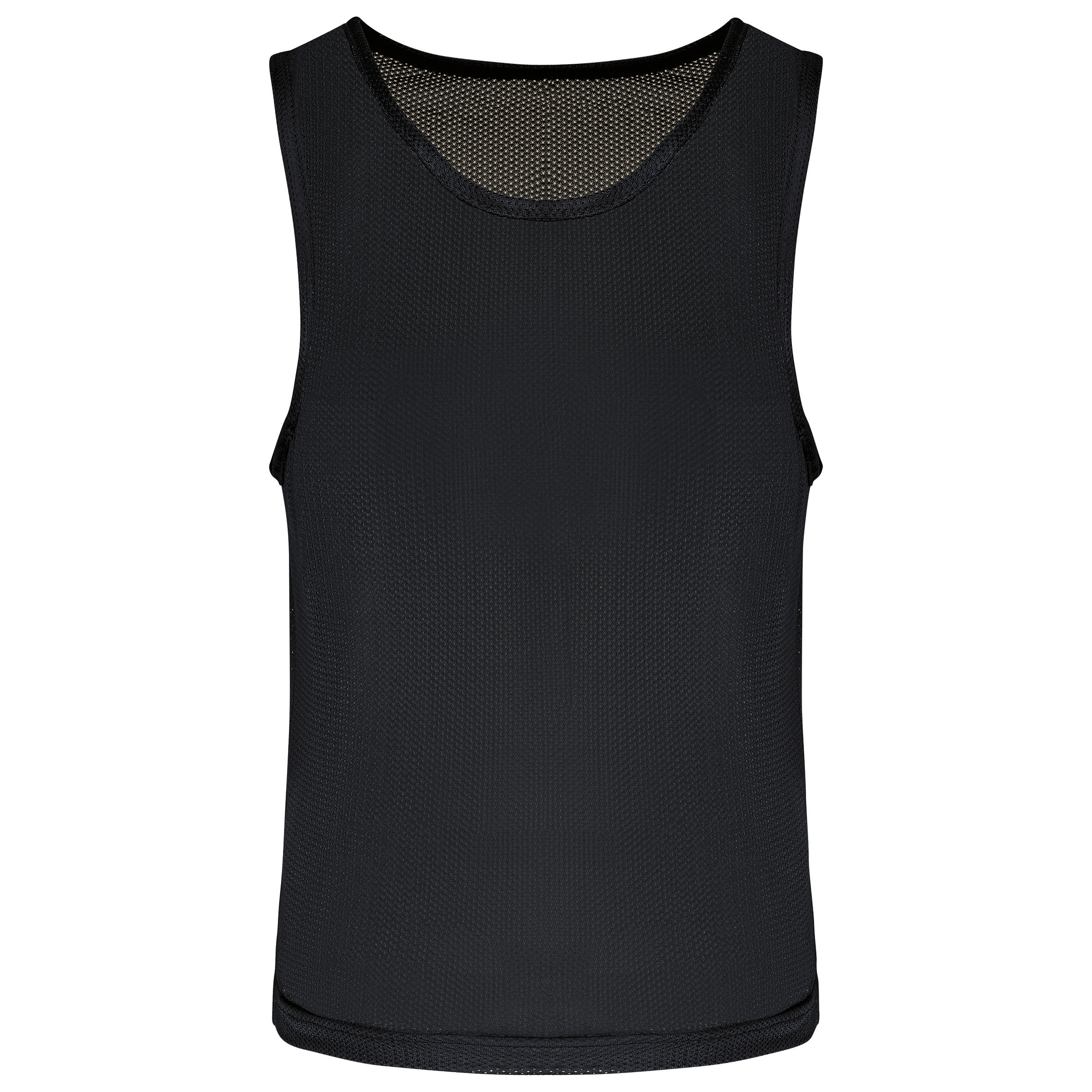 100% poliestru. Tkanina z siateczki. Wykończona podwójnym szwem na dole ubrania. Uprawianie różnych sportów