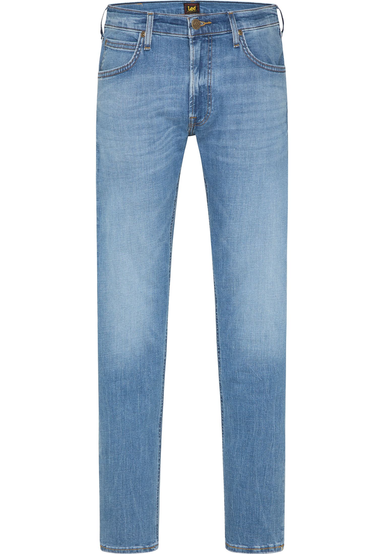 Jeansy Slim Tapered: typowo dopasowany krój. Prawdziwy autentyczny kolor: Deep Blue High Stretch Deluxe Denim 12 3/4oz. 93% bawełna / 5% poliester / 2% elastan. Ciemnoniebieski dżins z miejscami do intensywnego użytkowania. Złote guziki i nity. Brązowa naszywka Lee® z tyłu. Kolor spłukiwania: 10 1/2 uncji - 98,5% bawełna / 1,5% elastan. Denim ze stretchem w jasnym niebieskim kolorze indygo. Kontrastowe szwy w kolorze tytoniu, guziki i nity z postarzanego mosiądzu. Naszywka Lee® ze skóry w kolorze koniaku z tyłu. Light Daze Kolor: 12 3/4oz - 99% bawełna / 1% elastan. Bardzo rozciągliwy i wygodny dżins w wyblakłym niebieskim kolorze. Brązowe szwy, antyczne srebrne guziki i nity. Brązowa skórzana naszywka Lee® z tyłu. Zawiera nietekstylne części pochodzenia zwierzęcego. Duża swoboda poruszania się w strategicznych miejscach. Szczegóły podpisu. Szczegóły podpisu.