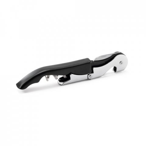 Metalowy i PP korkociąg z otwieraczem do butelek, nożem sommelierskim i spiralą ze stali nierdzewnej.121 x 20 x 12 mm