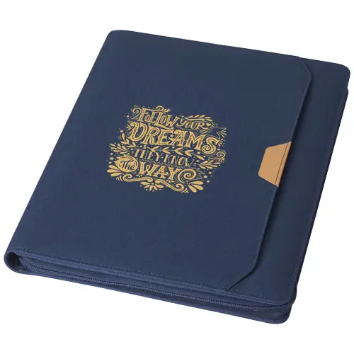 Nomumi teczka z notatnikiem do pisania częściowo wykonana z poużytkowego poliestru pochodzącego z recyklingu z certyfikatem RCS, co czyni ją bardziej zrównoważonym wyborem, ponieważ pomaga zmniejszyć zużycie pierwotnego surowca. Posiada zapięcie na zamek błyskawiczny, pętelkę na długopis, kieszeń harmonijkową i 20 białych kartek w linie z papieru z recyklingu o gramaturze 70 g/m2 pochodzącego ze zrównoważonych źródeł. Pióro i inne akcesoria widoczne na zdjęciach nie są dołączone do tego produktu.