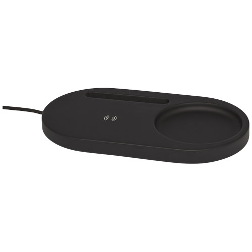 Organizer biurkowy z funkcją ładowania bezprzewodowego o mocy 5 W wykonany z połączenia naturalnego wapienia i korka. W przypadku urządzeń, które nie obsługują ładowania bezprzewodowego, wymagany jest zewnętrzny, bezprzewodowy odbiornik ładujący lub etui z odbiornikiem. Dostarczana w pudełku wykonanym w 100% z materiałów z certyfikatem FSC wraz z instrukcją obsługi z certyfikatem FSC. Zawiera kabel Micro-USB o długości 100 cm.