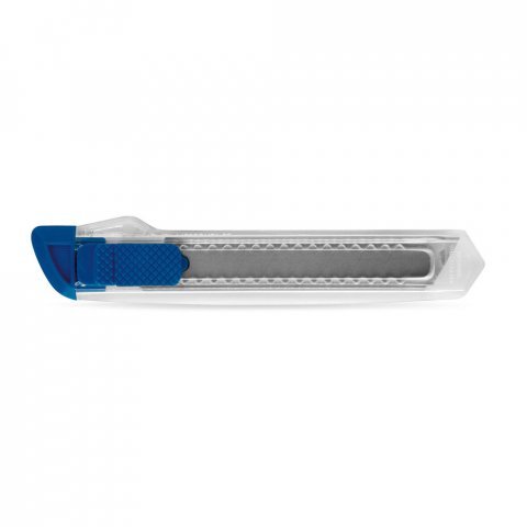 Precyzyjny nóż z blokadą bezpieczeństwa i zdejmowaną górną częścią do regulacji ostrza. Przezroczysta obudowa.155 x 30 x 10 mm
