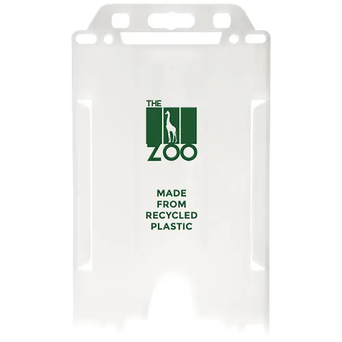 Etui na karty w orientacji pionowej wykonane z tworzyw sztucznych pochodzących z recyklingu. Idealne na wystawy, wydarzenia networkingowe oraz w miejscach pracy. Nadaje się do standardowych wizytówek i wejściówek wielkości karty kredytowej. Ze względu na charakter tworzyw sztucznych pochodzących z recyklingu odcienie kolorów mogą się nieznacznie różnić i mogą występować kolorowe plamki. Wyprodukowano w Wielkiej Brytanii.