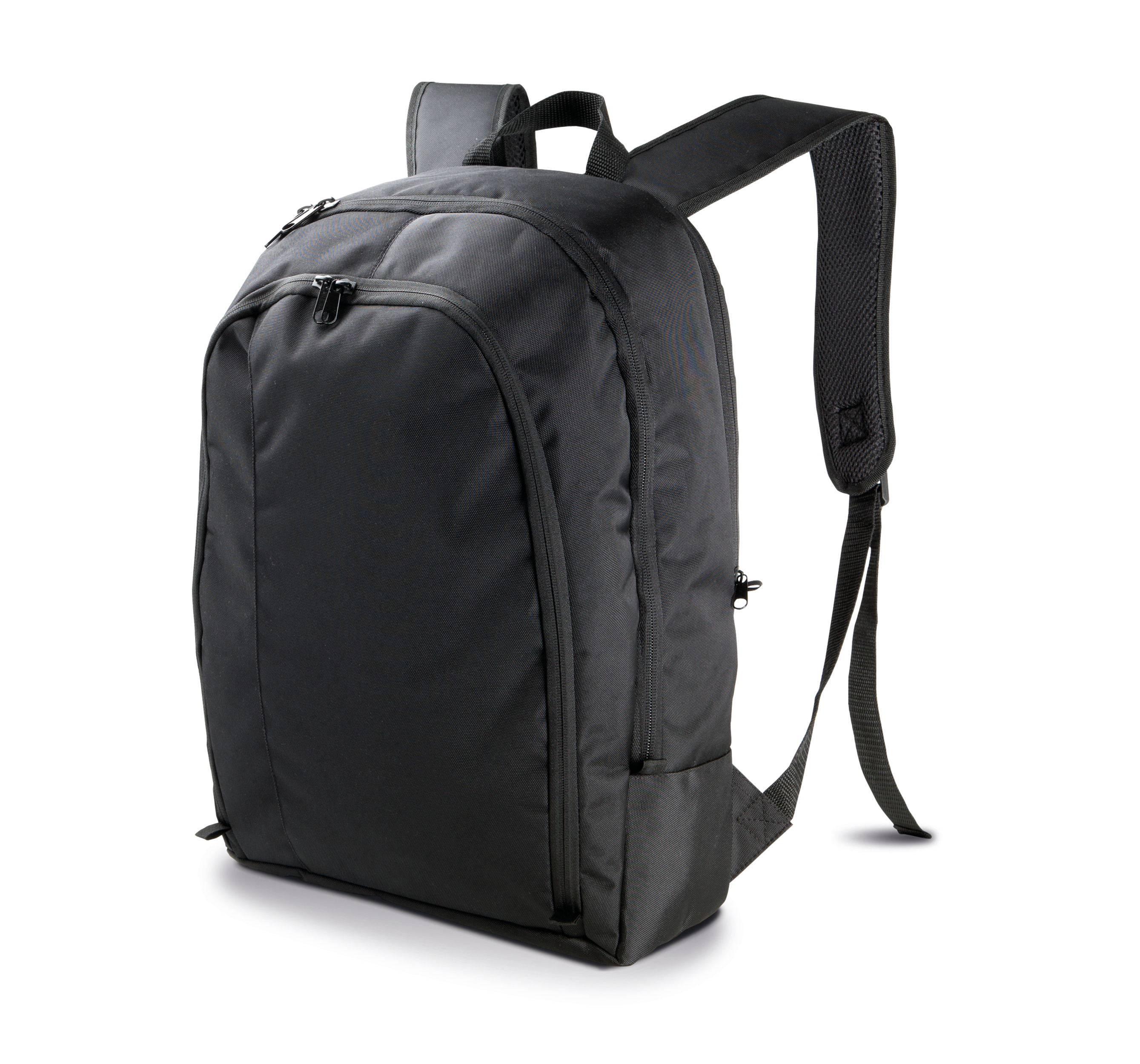 Plecak na laptopa z poliestru 900D. 3 przegródki wewnętrzne; jedna wyściełana zamkiem błyskawicznym na laptopy do 15". 1 przednia kieszeń z zamkiem błyskawicznym i przegrodą z siatki oraz miejscem na breloczek. Regulowane paski. Odporny materiał. 3 przegródki wewnętrzne, jedna z nich wyściełana, idealna do umieszczenia komputera. Regulowane ramiączka dla większej swobody ruchów.