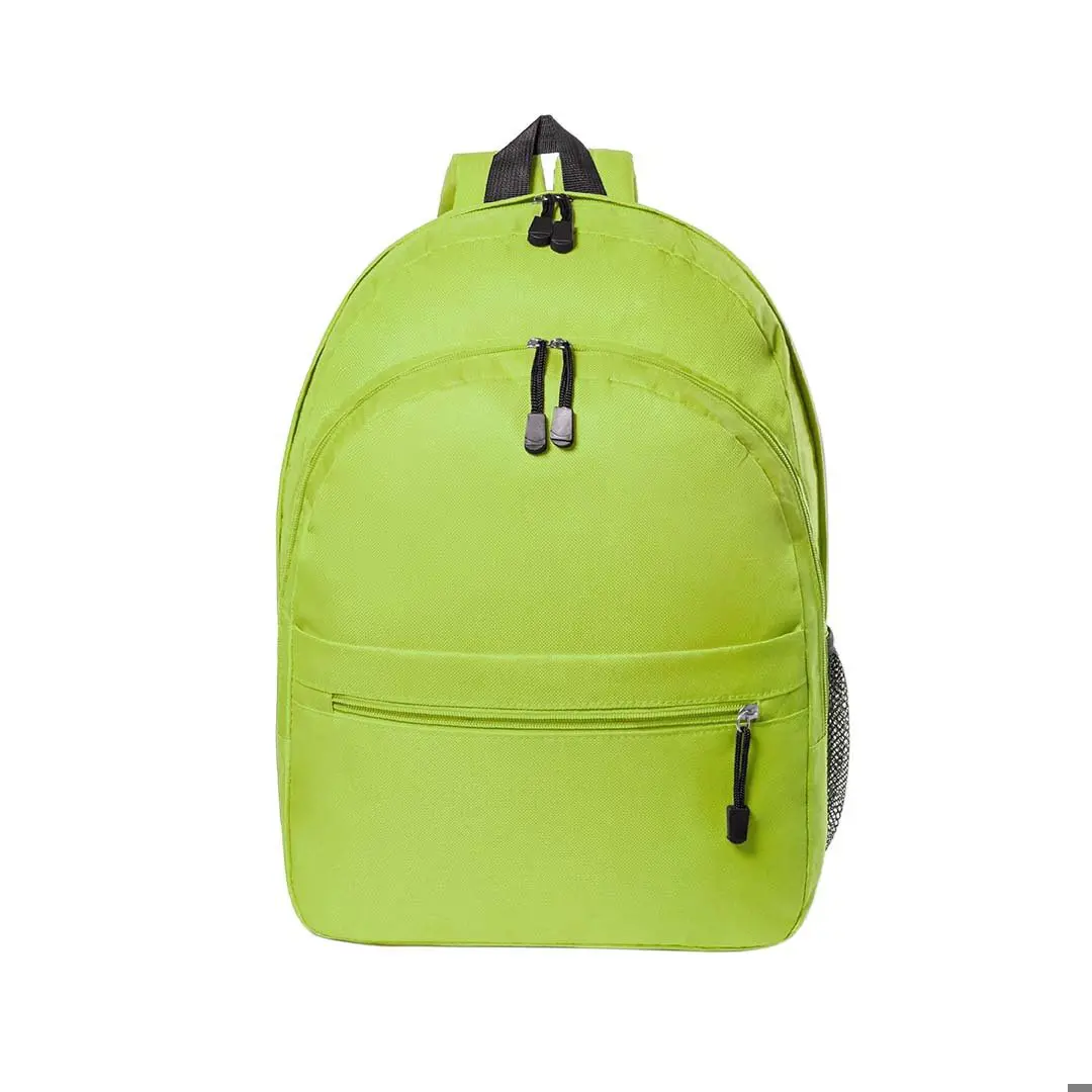 Plecak z wytrzymałego poliestru 600D o swobodnym kroju w szerokiej gamie kolorów. Dwie główne przegrody zapinane na zamek oraz kieszeń przednia. Boczna siatka ułatwiająca dostęp, uchwyty z taśmą ułatwiającą otwieranie i akcesoria w kolorze czarnym. Wyściełany tył i regulowane wyściełane szelki.