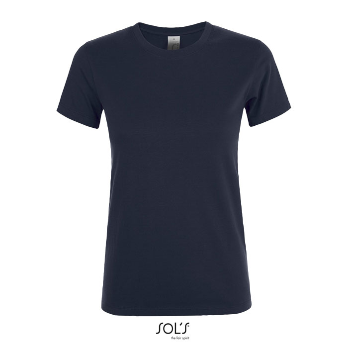 Damska koszulka SOL'S REGENT z dzianiny single jersey o nowoczesnym, dopasowanym kroju. Wzmocniony szew przy dekolcie, prążkowany kołnierz, szew boczny. Materiał : single jersey 150g / m², 100% bawełna typu ring-spun. OEKO-TEX. Rozmiar: XS-XXL.