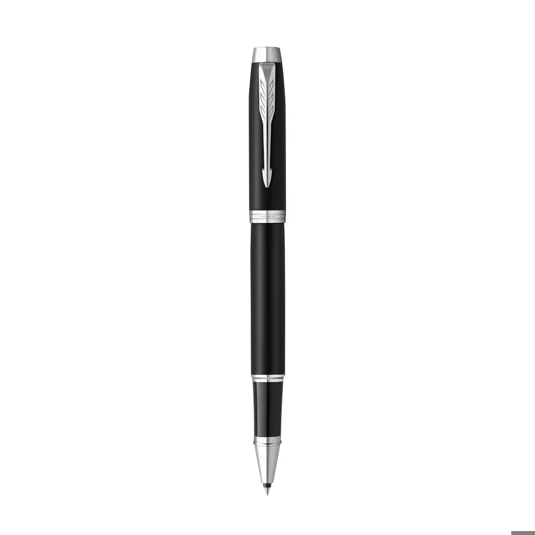 Roller Parker IM Essential, Con cuerpo y capuchón metálicos lacados en color negro mate y adornos cromados. Inconfundible clip con la forma icónica en punta de flecha de la marca en la capucha. En tinta negra y presentado en estuche individual negro con logotipo Parker. Parker IM es la gama de entrada al universo Parker, cuidada en cada detalle y pensada para el uso intensivo diario. Con tinta Parker Quink, que ofrece una escritura fluida y fiable sobre el papel.