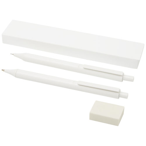 Antybakteryjny zestaw piśmienniczy składający się z długopisu automatycznego, ołówka mechanicznego i gumki. Dodatek w postaci nano proszku ogranicza rozwój mikroorganizmów na powierzchni długopisów.
