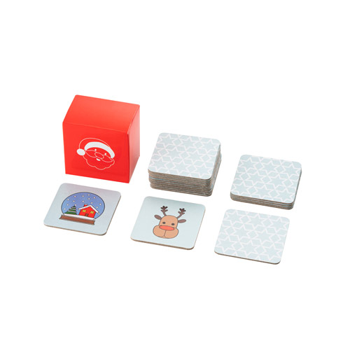Gra pamięciowa, 20 elementów z motywami bożonarodzeniowymi, lekka i łatwa do transportu. Pudełko może być personalizowane i można go użyć do zapisania gry. Rozmiar sztuki: 50 x 50 x 1.5 mm | Pudełko: 56 x 54 x 35 mm