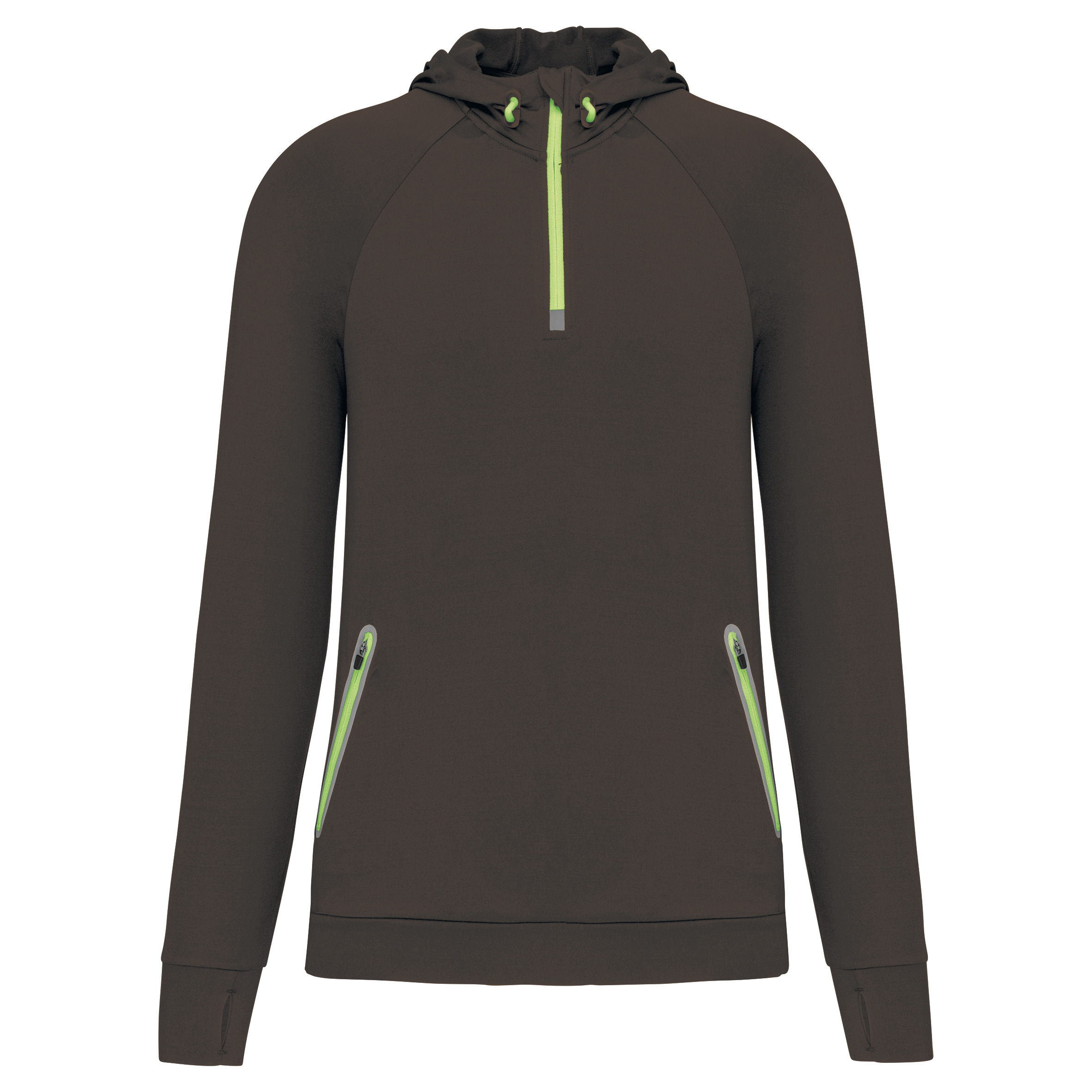 90% poliester / 10% elastan. Ultra miękka, szczotkowana tkanina dżersejowa. Raglanowe rękawy. Dwie odblaskowe kieszenie zapinane na zamek. Zamki i sznurowadła: Biały dla koloru Granatowego, Czarny dla koloru Czerwonego oraz Sport Grey Melange i Lime dla koloru Ciemnoszary. Niezwykle miękki, szczotkowany materiał dżersejowy. 2 kieszenie zapinane na zamek i odblaskowe.