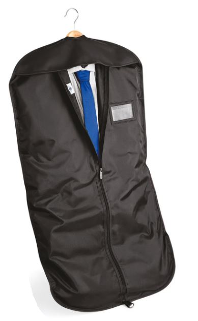 Poliester 210D. Składa się i zwisa z klamrą. Przezroczysta kieszeń do identyfikacji. Całość zapinana na zamek błyskawiczny. Lekka i wytrzymała tkanina. Umożliwia przewóz garnituru lub trzech koszul.