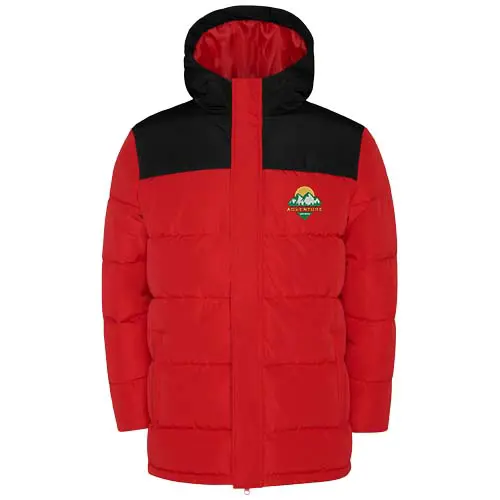 Ocieplana kurtka ze stałym kapturem. Zamek błyskawiczny z przodu kryty plisą. Osłona podbródka. Dwie boczne kieszenie zapinane na zamek. Elastyczne mankiety.