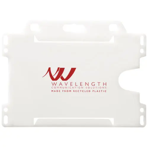 Etui na karty w orientacji poziomej wykonane z tworzyw sztucznych pochodzących z recyklingu. Idealne na wystawy, wydarzenia networkingowe oraz w miejscach pracy. Nadaje się do standardowych wizytówek i wejściówek wielkości karty kredytowej. Ze względu na charakter tworzyw sztucznych pochodzących z recyklingu odcienie kolorów mogą się nieznacznie różnić i mogą występować kolorowe plamki. Wyprodukowano w Wielkiej Brytanii.