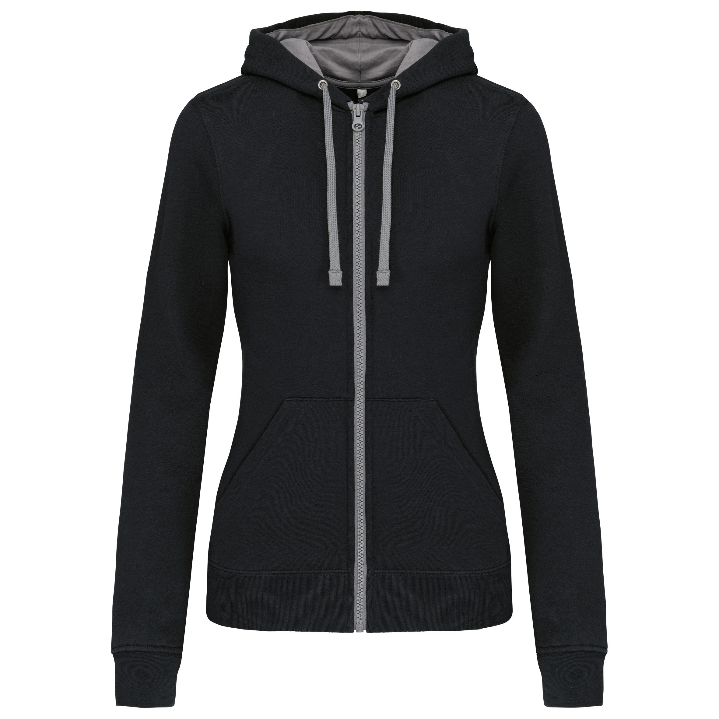 Kontrastowa damska bluza z kapturem i zamkiem Długi rękaw